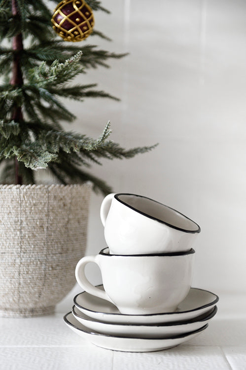 Conjuring images of white sandy islands rimmed with pristine blue waters, the Andaman collection is our tribute to unhurried island life. Understated, organically shaped, and in classic white with a hand painted black rim. Matte finish.