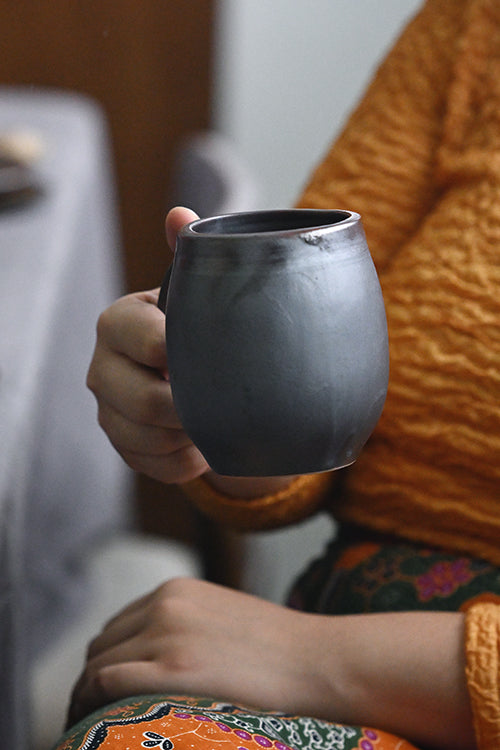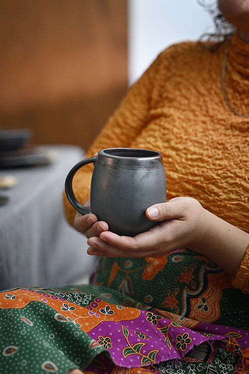 A cozy companion at the desk or for restful evenings, the gently contoured Hug Mug is designed to nestle perfectly between two hands, or wrap your fingers comfortably through the oversized handle. A blissful embrace with each sip.