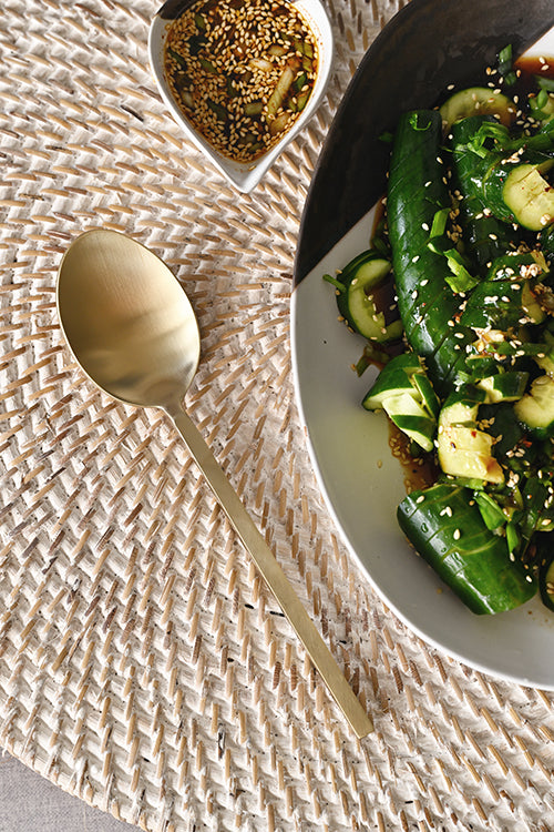 A sophisticated solution to plating up joy around the table. Our hand-foraged serving spoons bridge the dining experience from your bespoke KRA tableware to the loving act of serving nourishing food those you cherish. Weighty, durable and modern, these mid-sized serving spoons are perfect for serving curries, side dishes, or desserts in style.
