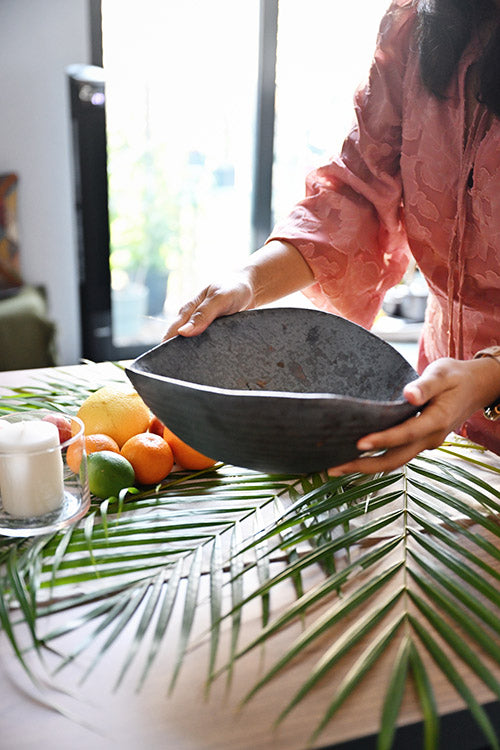 Shaped to mimic the folds of a seashell, our ceramic Shell Serving Bowl also doubles as a sculptural centrepiece for fruit on the table. Available in two sizes, both generously sized for family-style dining.