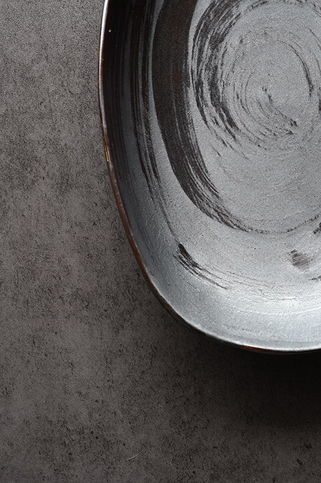 Swirling smoke filling the air, kissing the wok, and alighting your senses. The Wok Hei collection features a dark, smoky charcoal base with a gentle swirling brushstroke in a textured semi-gloss.
