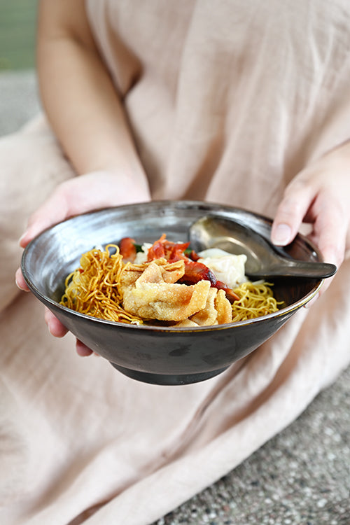 Our modern Noodle Bowl features an elegantly tapered silhouette and a wide top for easy eating. A footed trim ensures neat and space-saving stackability.