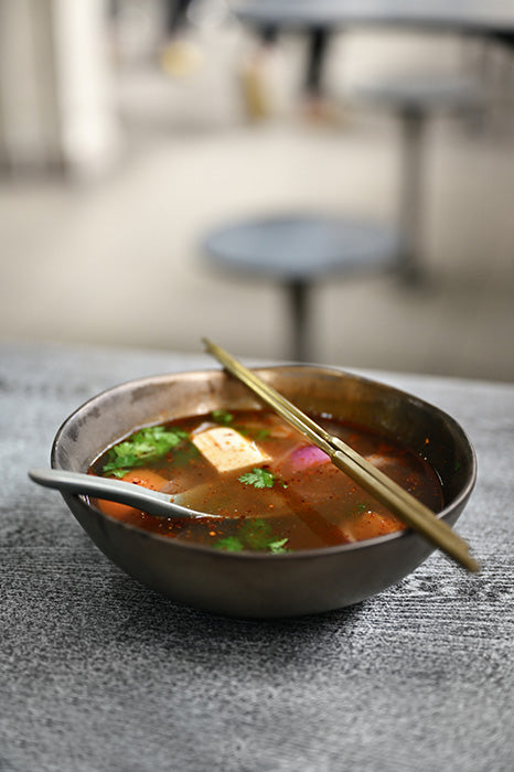 Paying homage to the rich, cultural heritage of the ancient Lanna kingdom, in modern Northern Thailand, this dynamic bronze glaze brings contemporary Asian flair to any table. Use as a bold, statement collection for the base of your tablescape, or as a luxurious accent to any of our other glaze collections: The Lanna Collection is a timeless canvas for your culinary creativity.