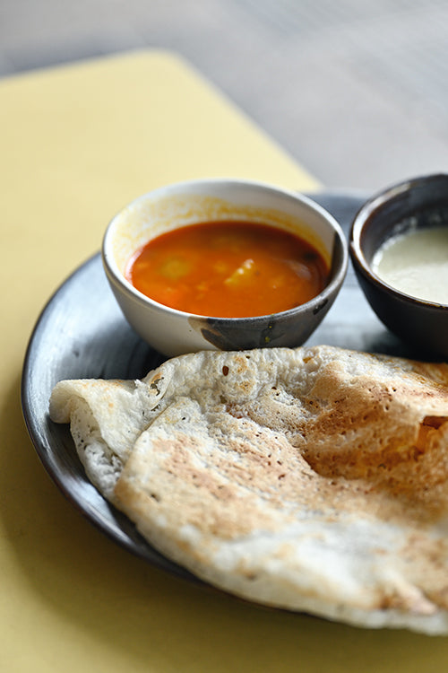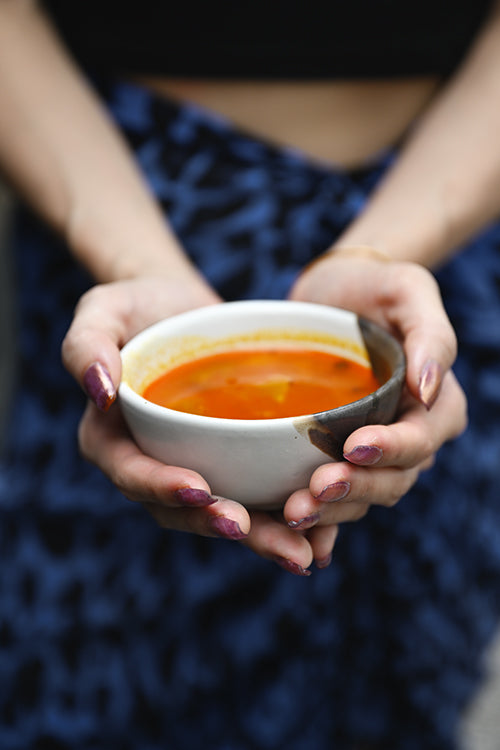 A deep, palm sized bowl. An essential on the table for dahl, snacks or pickles that works hard around the kitchen for mis-en-place or organizing trinkets.
