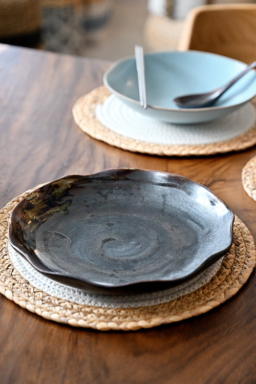 The gently undulating rim is the star of the ceramic Wave Rim Plate. Use as a centrepiece or in place of a serving platter for family meals.