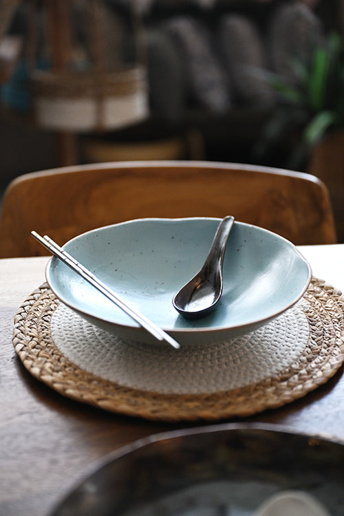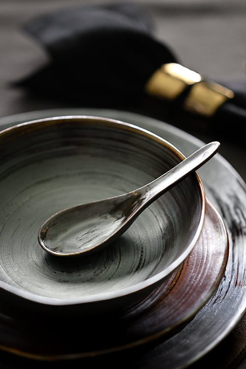 This classic ceramic Soup Spoon is the perfect accompaniment to our ceramic Soup Bowls. Pairs elegantly with wooden chopsticks on the side.